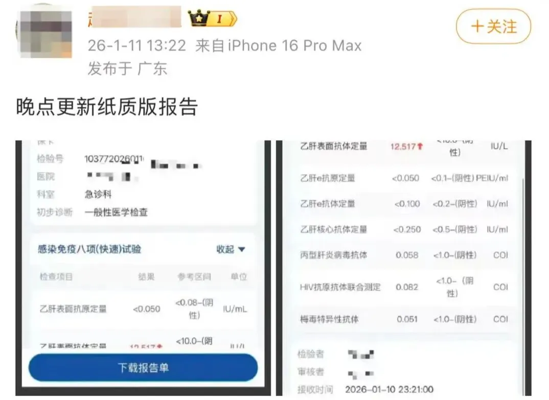 1月10日,网友通过该网红直播画面发现其梳妆台出现药盒,疑似为抗HIV药物“艾诺米替片”。与此同时,网络流传一份与该网红真实名字相同的2024年9月6日东莞市某医院住院记录,诊断类型为“梅毒”。记录显示患者身份证号与该网红户籍地开头一致,且与其小号发布的留置针自拍时间高度吻合。