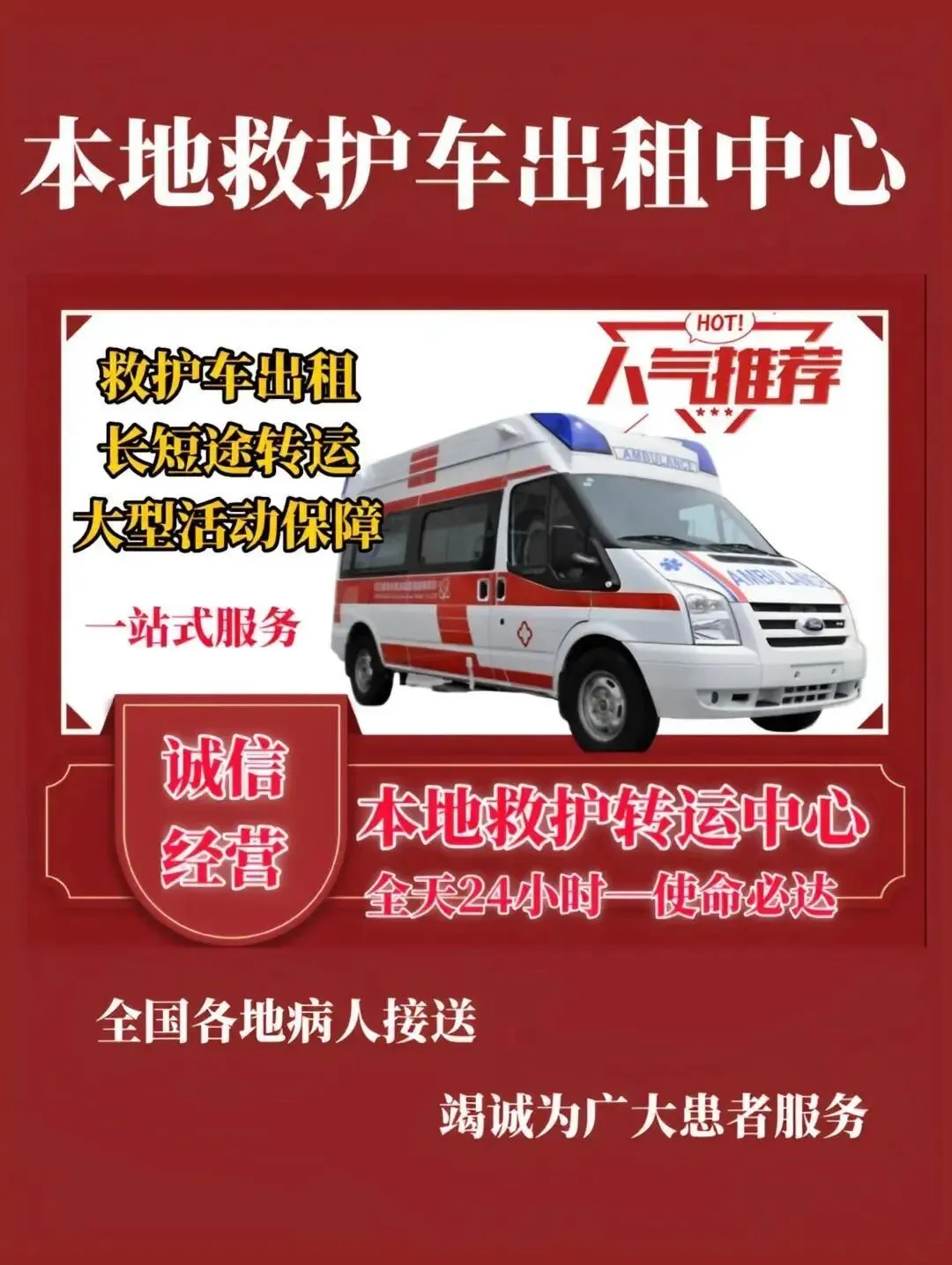 前几天,隔壁王大爷转运去北京那天,我们司机提前半小时就到了医院,而且还配了专业的护士全程陪同着。而且路上呢,还反复问了他们一下路线,并且反复确认了一下病人的身体状况,才出发的。还告诉他们们走的是国道。避开了所有堵的路段,这种细致的沟通让他们心里面特别踏实,并且他们最终顺利的到达了目的医院,整个过程病人也没有遭什么罪,特别的安心。这次让他们知道正规可靠的救护车服务特别的重要,所以他们非常推荐我家机构,希望大家都能知道这家靠谱的正规救护车服务。所以有需要转运病人的家人们,直接联系我们。非常感谢你们选择我们。有需要的话,请直接拨打我们的电话,谢谢。