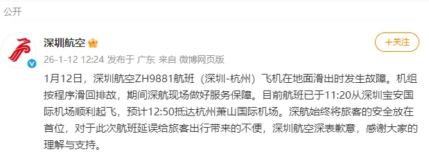 记者联系深圳航空公司,工作人员表示,ZH9881这趟航班确实有飞机推出后滑回的情况,目前已经组织下客了,后续的安排以机场组织为准,乘客目前在机场。是飞机出了故障还是其他问题?上述工作人员未直接回应。