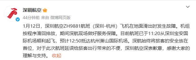 1月12日中午,深圳航空致歉: