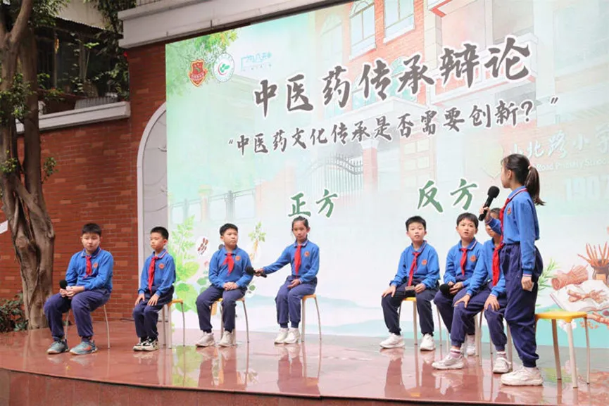 “最强大脑《百草歌》”游戏中,同学们比拼草药名称记忆功底;全体学生齐诵《中药趣味小歌谣》,将中药知识与韵律之美完美融合;趣味短剧《没有什么是一杯凉茶搞不定的》以贴近生活的剧情,展现了凉茶等中医药文化在日常健康养护中的应用;极具思辨性的“对战AI:中医药传承是否需要创新融合”辩论和动感十足的《本草纲目》将现场氛围推向高潮。