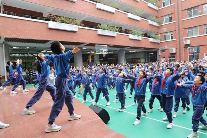 “中医药文化不是枯燥的,而是有情、有感、有用的。它已经融入到同学们的日常美学、劳动、体育等方方面面。”张忠德在与上千名小学师生齐做“平调五脏健儿操”后,对记者说。
