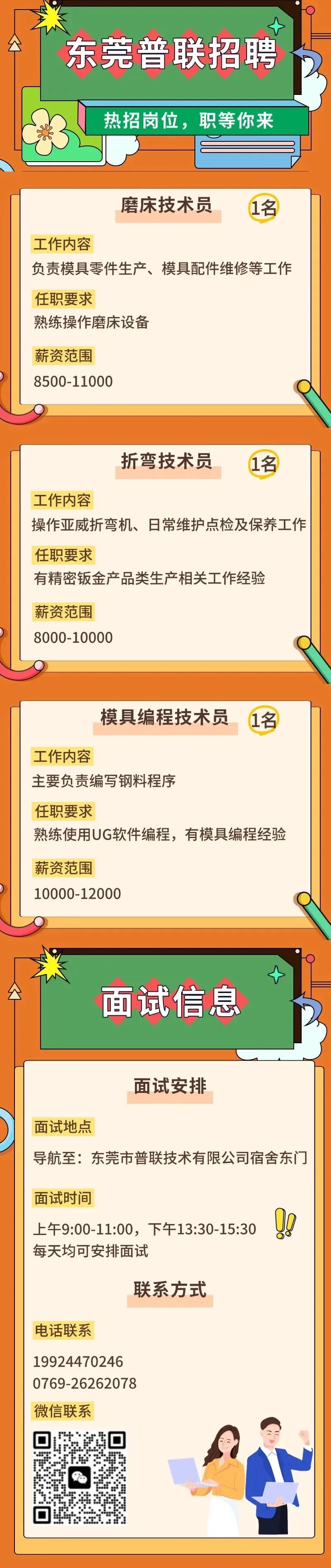 东莞普联招聘0112 | 磨床、折弯、模具编程技术员岗位热招中!