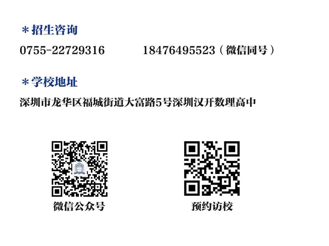 第五,张*端同学中考554分,高二年级从深圳第二高级中学转入汉开国际部,最终获得香港科技大学无条件录取。类似的优秀案例还有很多,每一位学子的成长都见证着汉开国际部的育人成效。