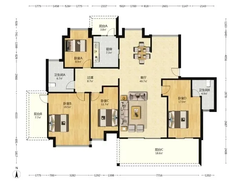 面积:173㎡