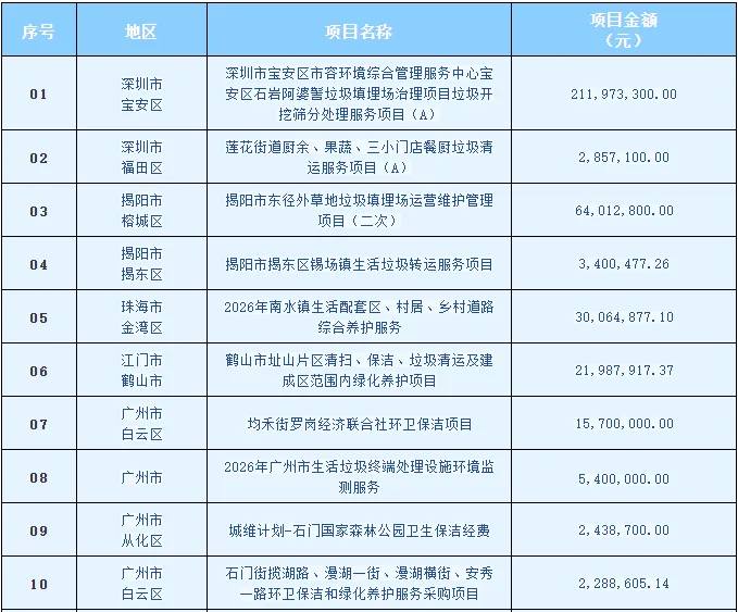 环卫服务、环卫装备招标资讯抢先看↓↓↓