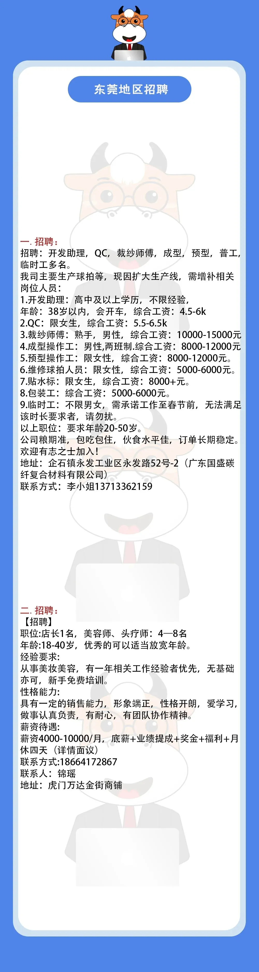 >01.12东莞地区招聘信息!