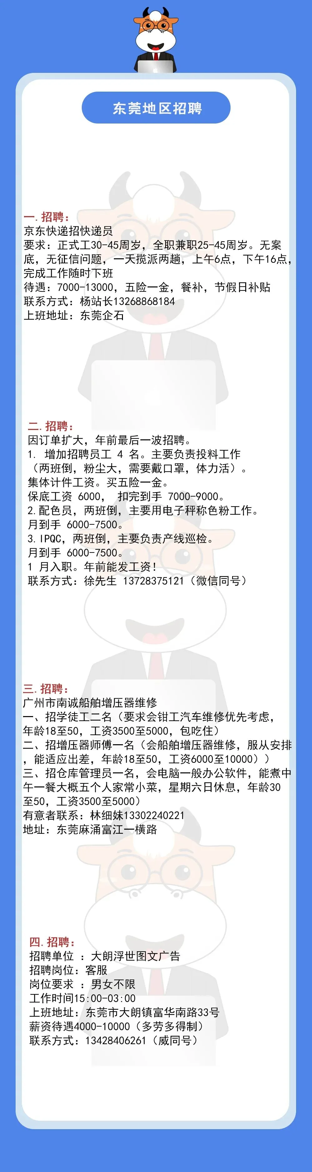 01.12东莞地区招聘信息!