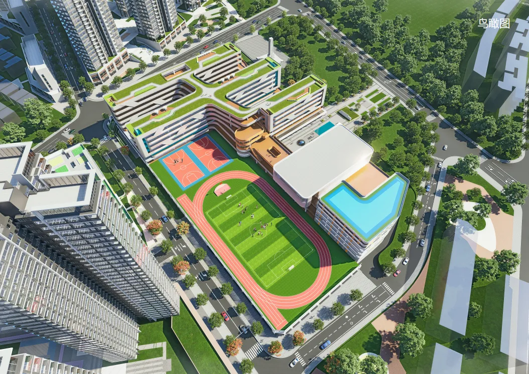 学校将高标准配备图书馆、风雨操场、室内篮球场、羽毛球场、网球场、匹克球场、多功能厅、游泳池、食堂等设施。