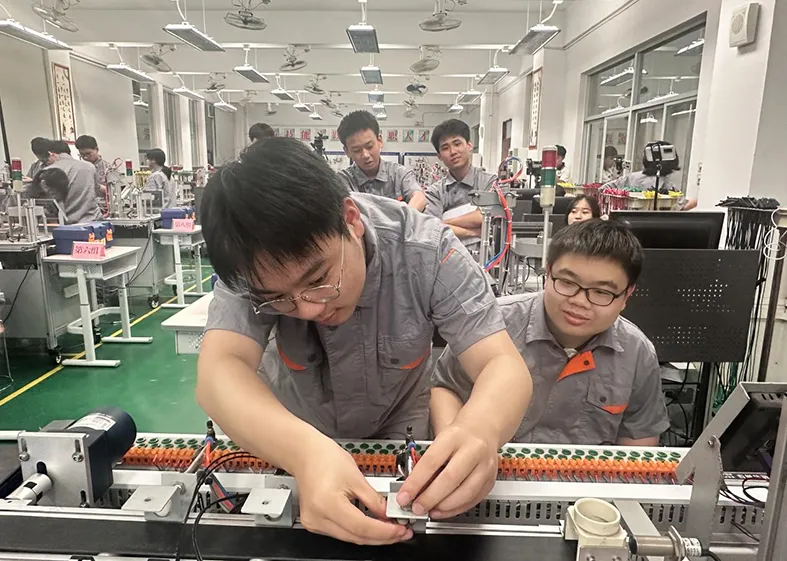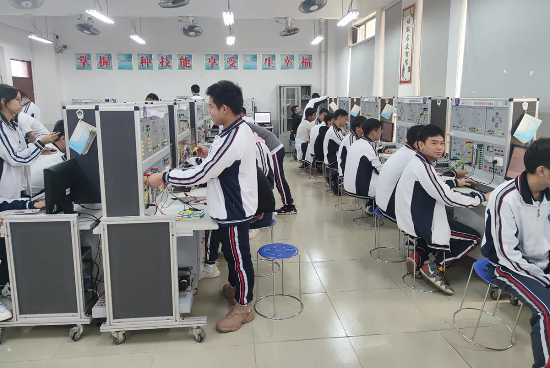 四、实习实训:配备有电气安装与维修实训室、机电一体化实训室、PLC技术实训室,电工实训室以及单片机技术实训室等一批先进的实训场室。与本专业合作企业包括东莞市辉胜自动化有限责任公司、东莞市大研自动化设备有限公司、东莞市盈聚电源有限公司子等多家企业,优秀毕业生可以安排到相关企业工作,待遇优厚。