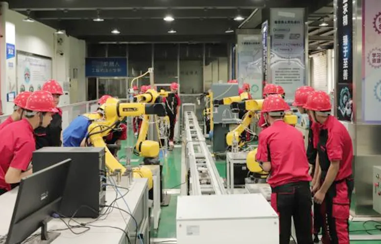 四、实习实训:配备了专门的工业机器人实训室、工业机器人应用编程一体化实训室、配有多种类机器人教学设备以及功能性产线、模块,包括:ABB机器人、KUKA机器人、发那科机器人、自动化流水生产线、模块化拆装机器人、大研机器人、PCB异形插件工作站等,合作企业包括东莞市大研自动化设备有限公司、东莞市辉胜自动化有限责任公司等,并成立了大研现场工程师班,学生可以在机器人制造企业、自动化生产线、研发中心等不同单位进行实习。通过实习实训,学生不仅能够提升自己的专业技能,还能够增强就业竞争力,为未来的职业生涯打下坚实的基础。