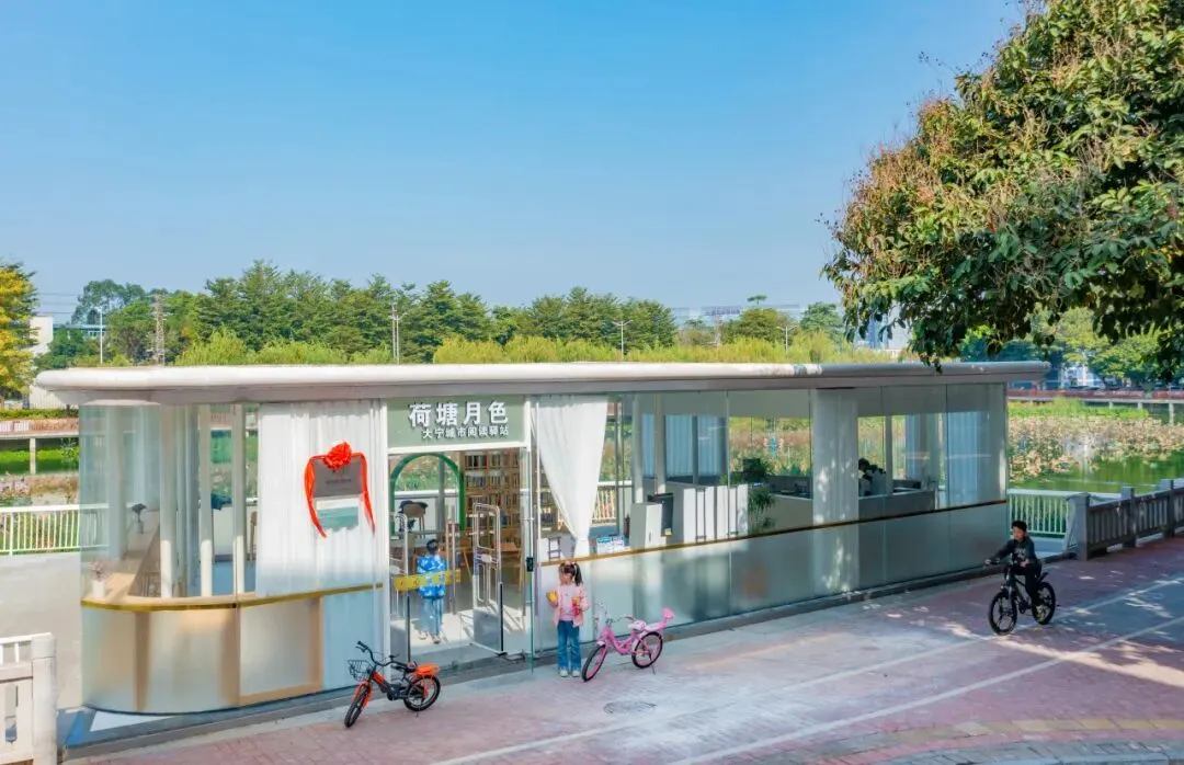 在大宁荷塘公园内,由虎门镇文化服务中心与大宁社区合作共建的“荷塘月色”大宁城市阅读驿站近日揭牌启用。