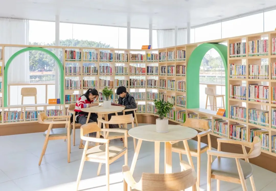 驿站分为室内借阅区和露天亲水平台阅读区,藏有文学、历史、旅游休闲和儿童读物等种类书籍2500册,配有智能图书管理系统,可实现图书自助借还,并提供免费WIFI,满足周边居民的阅读需求。