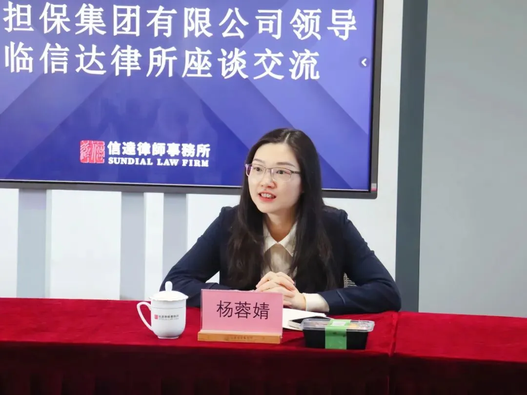 会议开场,杨斌律师介绍了本次座谈交流会的契机、背景以及信达的基本概况;信达公司证券专业委员会主任陈勇律师介绍了信达各专业委员会的业务状况,以及信达在公司证券法律业务领域所斩获的荣誉、取得的成绩和呈现的发展态势。深圳中小担风控部法务经理廖侑宏回顾了自身以及深圳中小担与信达之间的渊源,对推动两家机构的深度交流满怀憧憬;深圳中小担副总经理杨蓉婧介绍了深圳中小担的历史、业务和发展等基本情况,阐述了深圳担保集团及深圳中小担在企业发展的投融资、政策扶持、资产证券化等资本市场业务中发挥的关键作用,并着重介绍了其在深圳颠覆性技术创新中心的布局,以及在科创企业科技专项支持政策、鲲鹏青年创业创新合作计划、全国首单碳资产证券化等方面承担的专业职能。