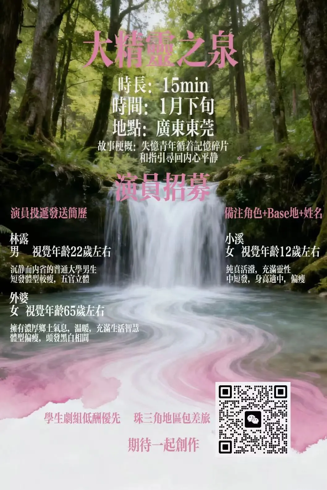 【1月下旬 东莞】学生剧组《大精灵之泉》招募演员