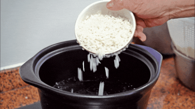 要想做出又靓又正的腊鸭饭,米要选好。丝苗米混合油粘米,米身细长、粒粒分明,最重要的是爽口不粘牙。