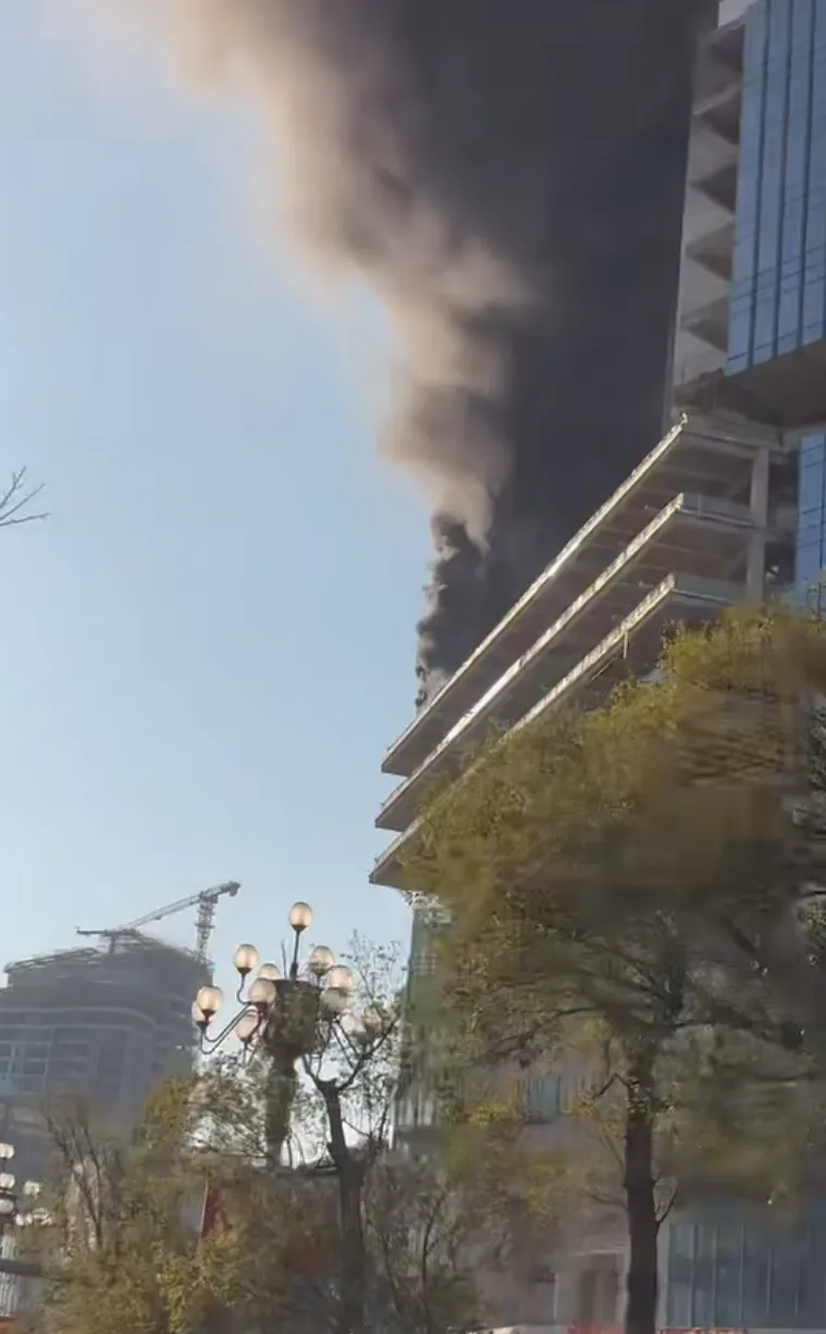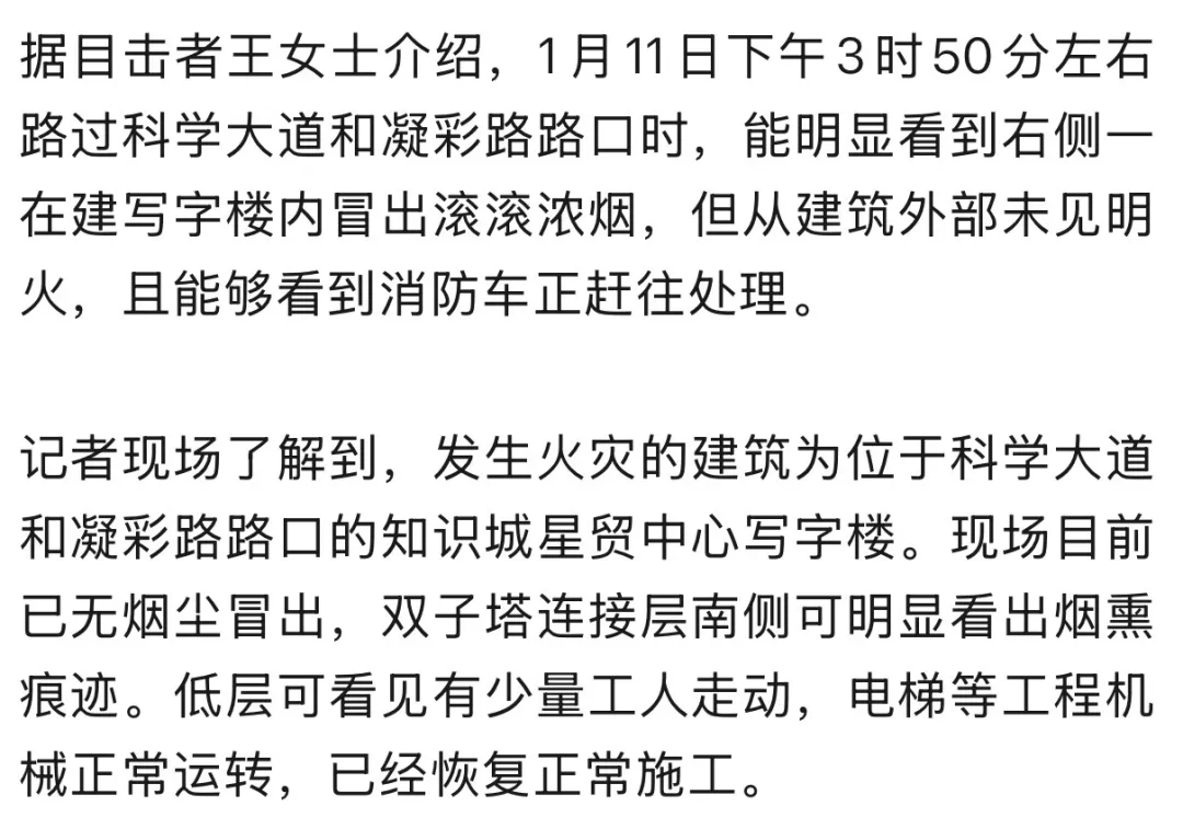 1月11日下午,广州市黄埔区科学城科学大道沿线一在建高层建筑发生火灾。