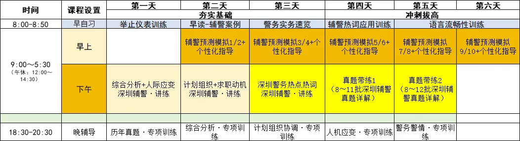 前3天夯实基础,从辅警基本能力出发,综合分析,计划组织,人际应变,这可都是辅警必考项,言语理解和求职动机也绝不落下,直接贯穿全程。