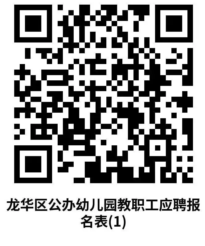 1、《龙华区公办幼儿园教职工应聘报名表》(扫描下方二维码下载)