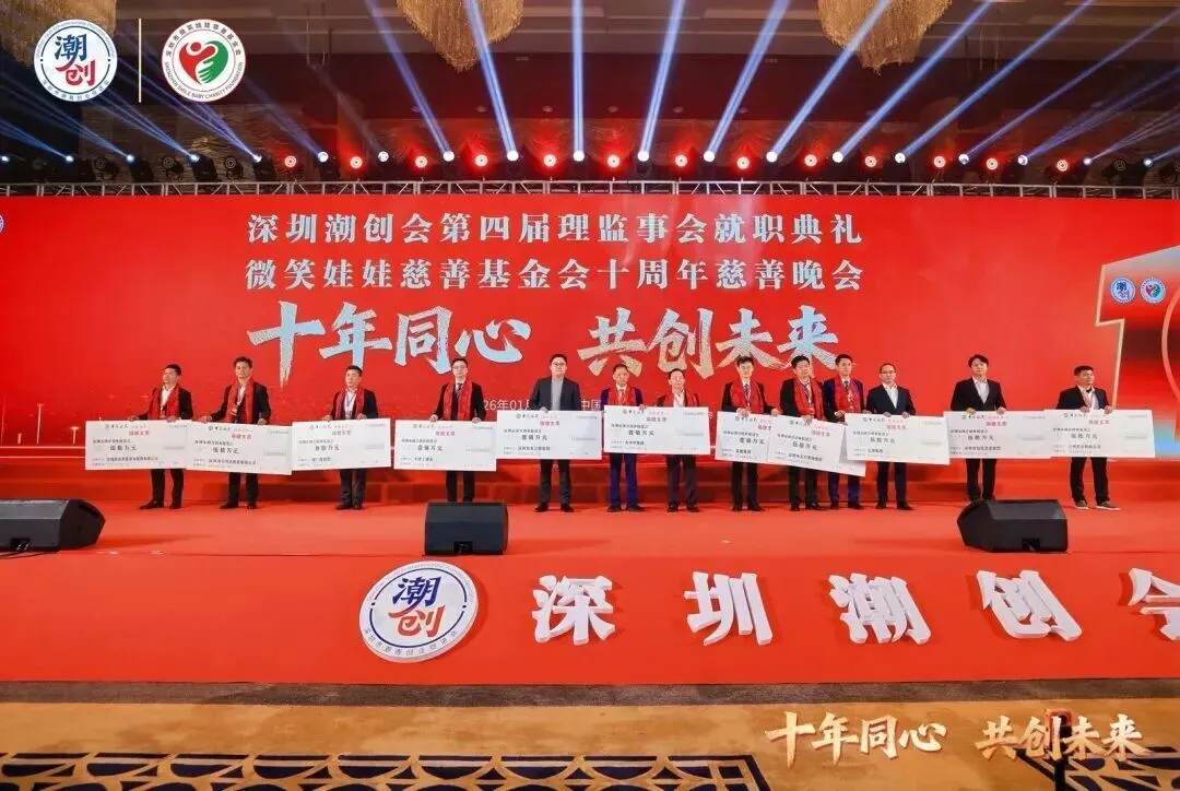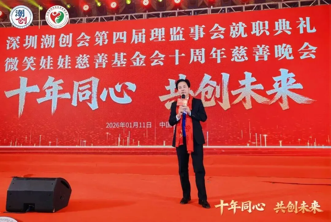 2026年1月11日,深圳大中华喜来登酒店洋溢着热烈而庄重的氛围,深圳潮创会第四届理监事会就职典礼暨微笑慈善基金会成立十周年慈善晚会隆重举办,来自相关部门领导、企业家代表、海内外潮属社团会长、潮汕籍乡贤及爱心人士、战略合作单位及相关机构代表等共 700 多位嘉宾出席盛典。活动以三大篇章串联起换届传承、公益践行与文化欢歌,既完成了深圳潮创会组织架构的新老交替,又彰显了“创业创新、为善最乐”的核心理念,为公益事业与潮人创业发展注入新动能。