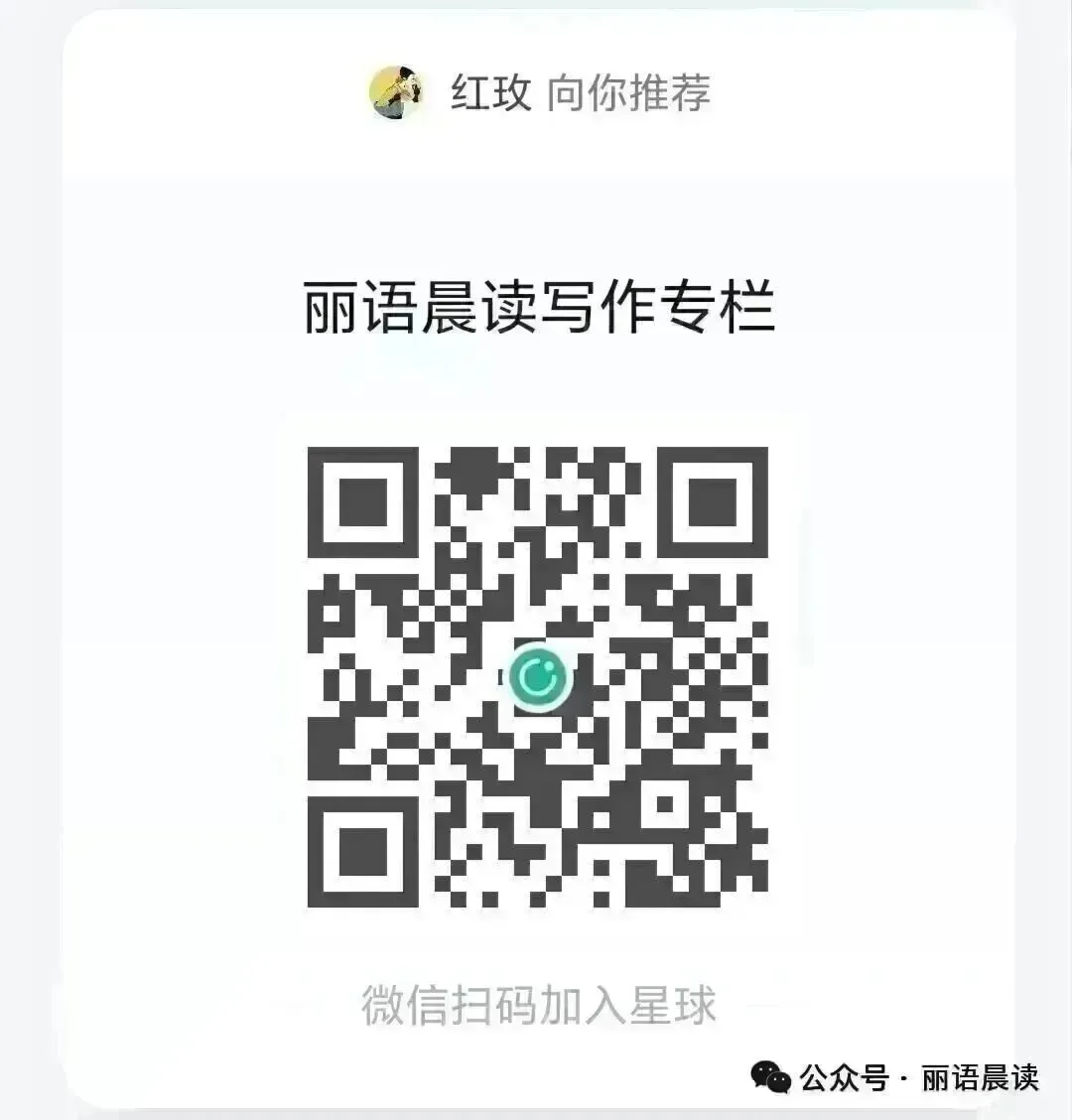 丽语写作专栏包括五个主题:高考作文模板、跟着满分作文学写作、时鲜写作素材(包含高考满分作文)、模拟试题优秀作文、高考写作技巧。丽语晨读的内容不断更新,以上内容涵盖在丽语晨读文件中。丽语晨读早自习内容是丽语晨读独家研发的包含跟着时评学写作+重点实词+必背篇目挖空精读+文言虚词知识+高考优秀作文拆解写作技巧+热点写作素材,内容很多,在星球不断更新,有问题可以留言,会有老师回复。欢迎来小语的知识星球一起学习!