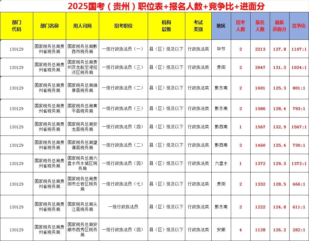 各岗位报名人数+竞争比+进面分