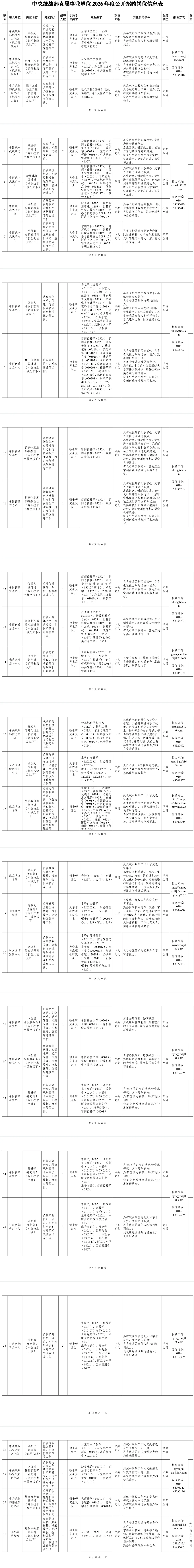 点击【阅读原文】查看原文及附件附件1: 中央统战部直属事业单位2026年度公开招聘岗位信息表.pdf