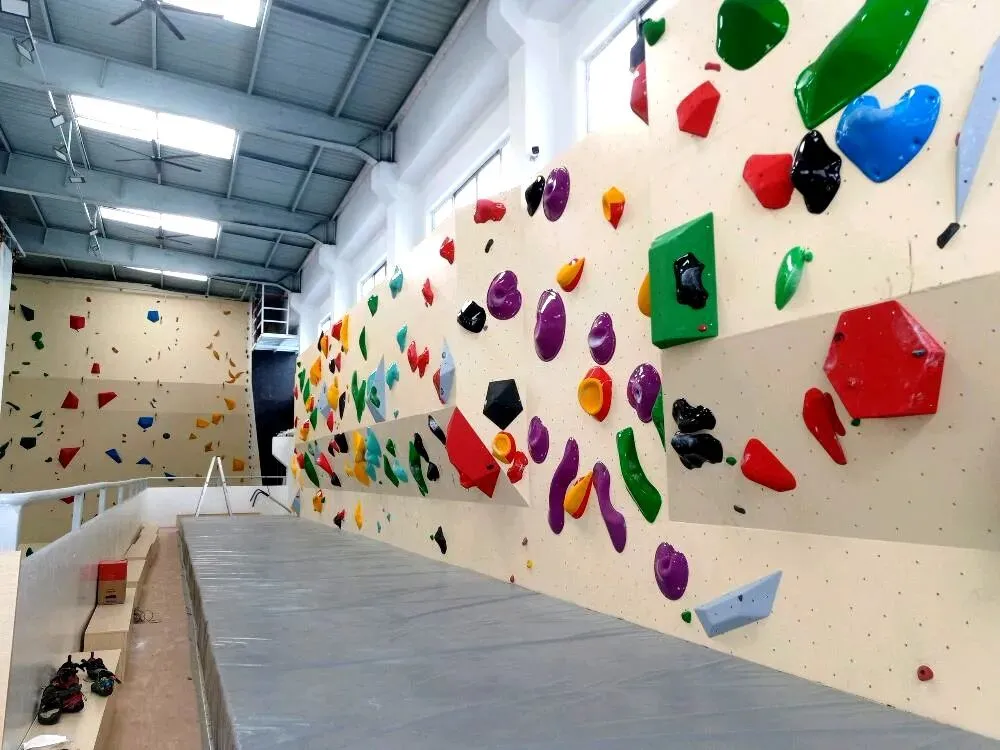 擎天攀岩(南站店)位于广州市番禺区石壁街屏山二村钟顺路628号,场地为室内综合攀岩馆,有4条道宽12米的标准速度道(高16米)、宽70米的难度墙(高13米)、宽80米的抱石区(高4.5米)。占地面积1300多平方米,攀爬面积将近2000平方米。攀岩馆位于大夫山高速路口旁,离钟村/石壁/广州南地铁站5公里左右。馆内设有空调、健身器材、跑步机、洗手间、沐浴间、休闲区、储物柜、WIFI等,园区内提供免费停车。