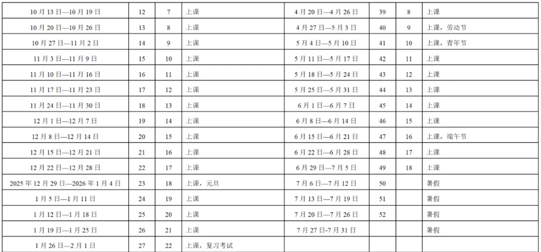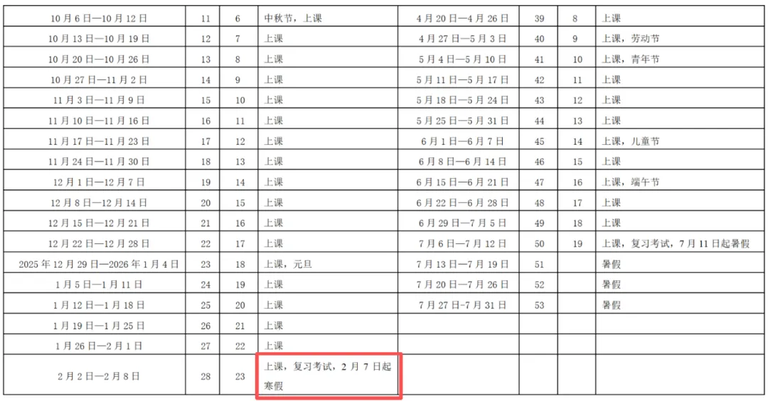 期末考试时间:2026年2月2日-8日(这段时间包含上课和复习考试)