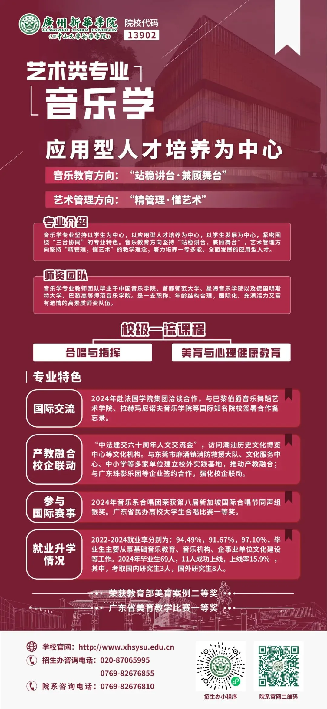广州新华学院音乐学专业,下设音乐教育及艺术管理两个专业方向。
