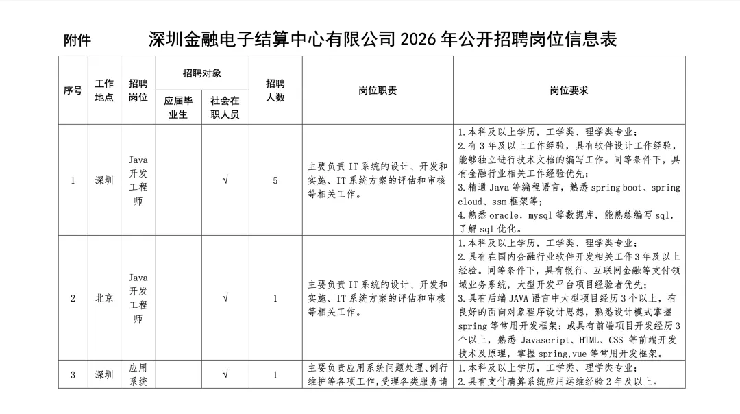根据工作需要,深圳金融电子结算中心有限公司(以下简称深圳结算中心)开展2026年公开招聘工作。现将有关事项公告如下:
