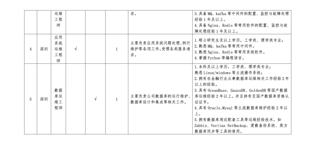 5.Java开发工程师、应用系统运维工程师、数据库运维工程师报考人员年龄不超过40周岁(含40周岁),风控岗、产品岗、运营岗、财务管理岗、行政办公岗报考人员年龄不超过35周岁(含35周岁);