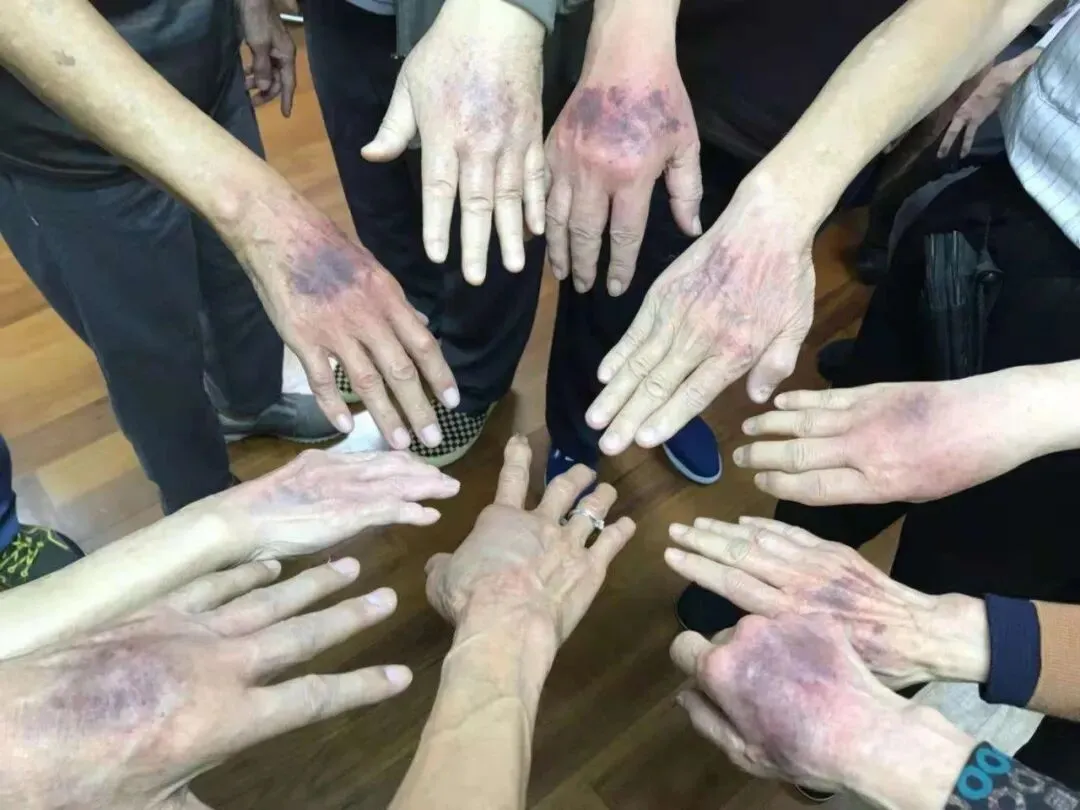 8、除了常规的自我拍打拉筋,在体验营中还有学员互相拍打的环节。有些老人、重病患者无力长时间拍打,还有些部位自己拍打不便,而且拍打力度不够,如能由他人拍打则效果更好,比如腘窝、腋窝、肩胛骨、头部、脚部等等。