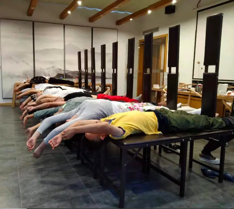 2、在体验营拍打拉筋的时间、强度都是与在家里练习无法比拟的。在这里是封闭式培训,每天至少拍打拉筋4-5小时,摧枯拉朽,这在家就无法办到。再看强度,则更有天渊之别。