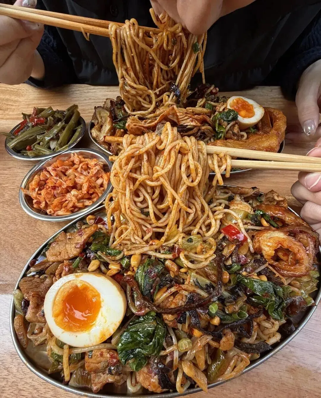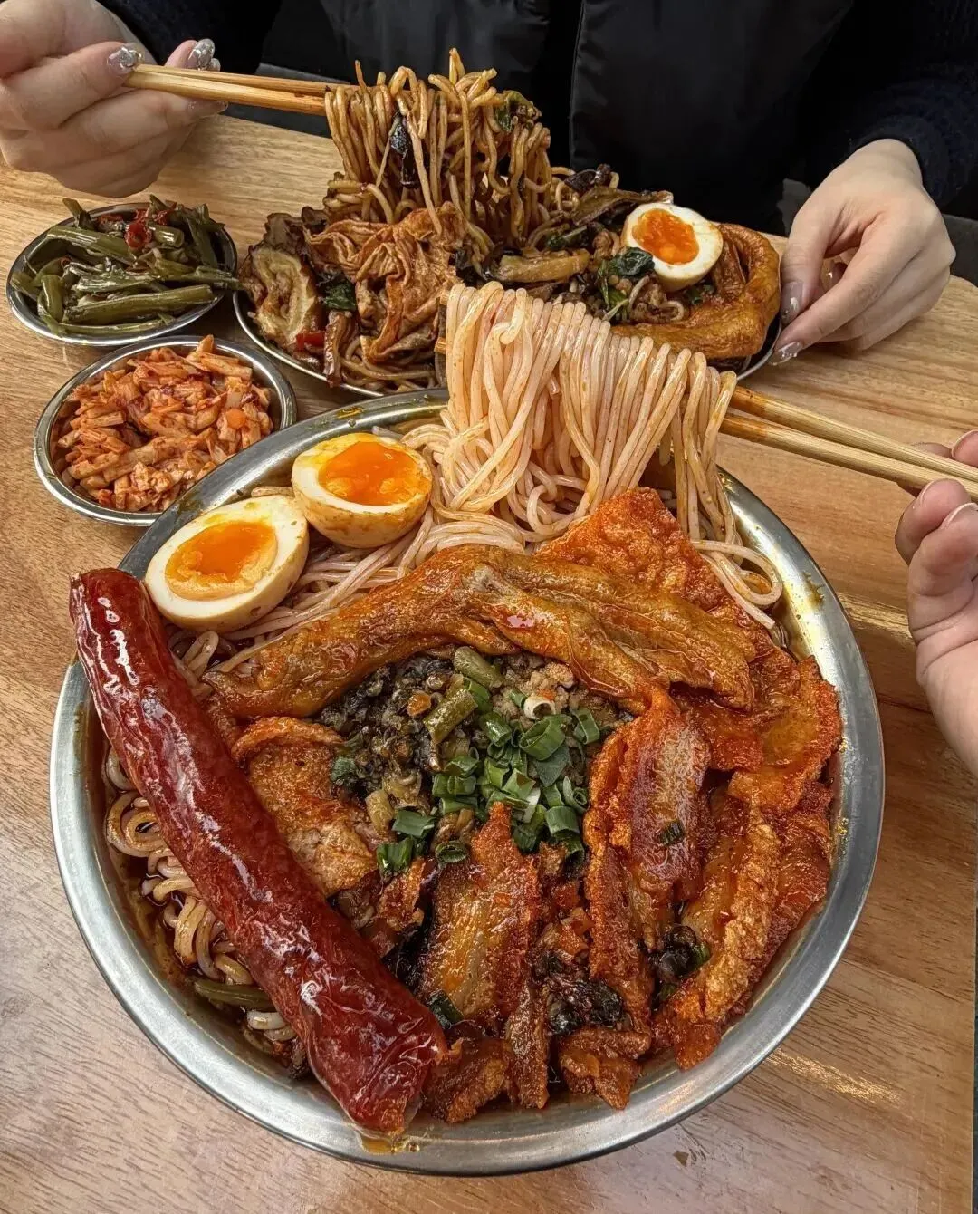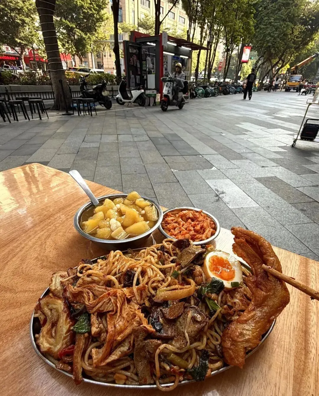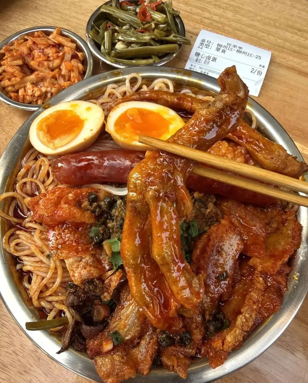 配菜也给得实在 , 酸笋、花生、腐竹、木耳 , 每一样都不敷衍。