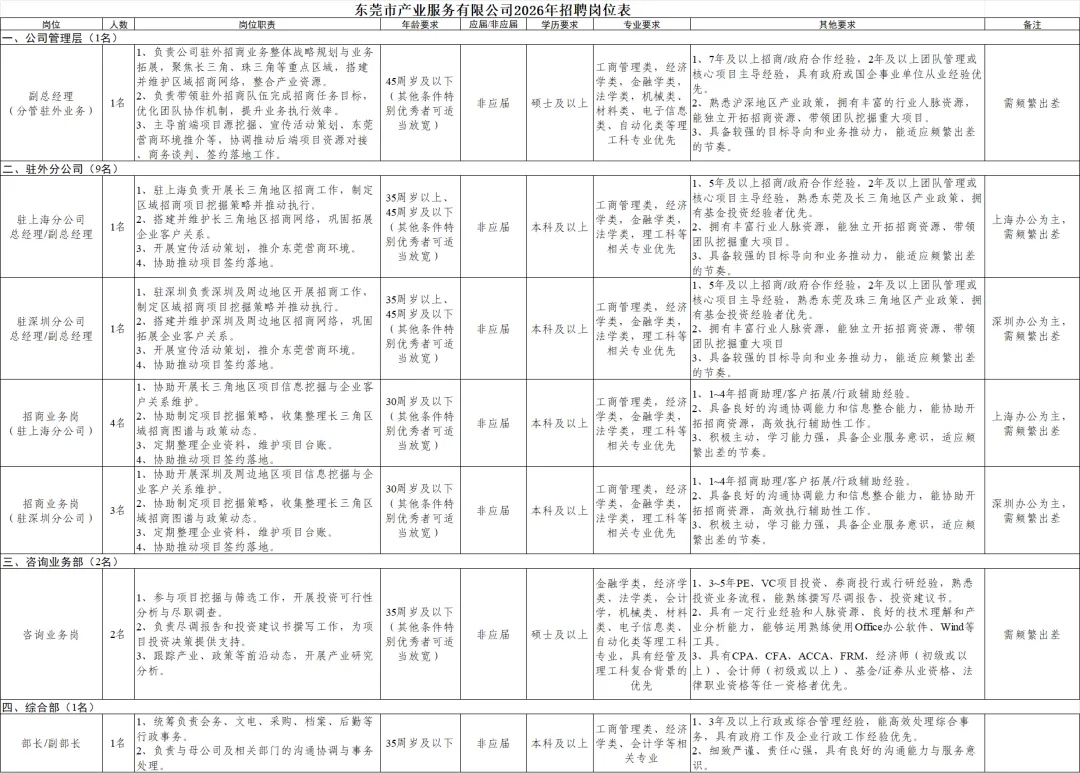 1.东莞市产业服务有限公司2026年招聘岗位表