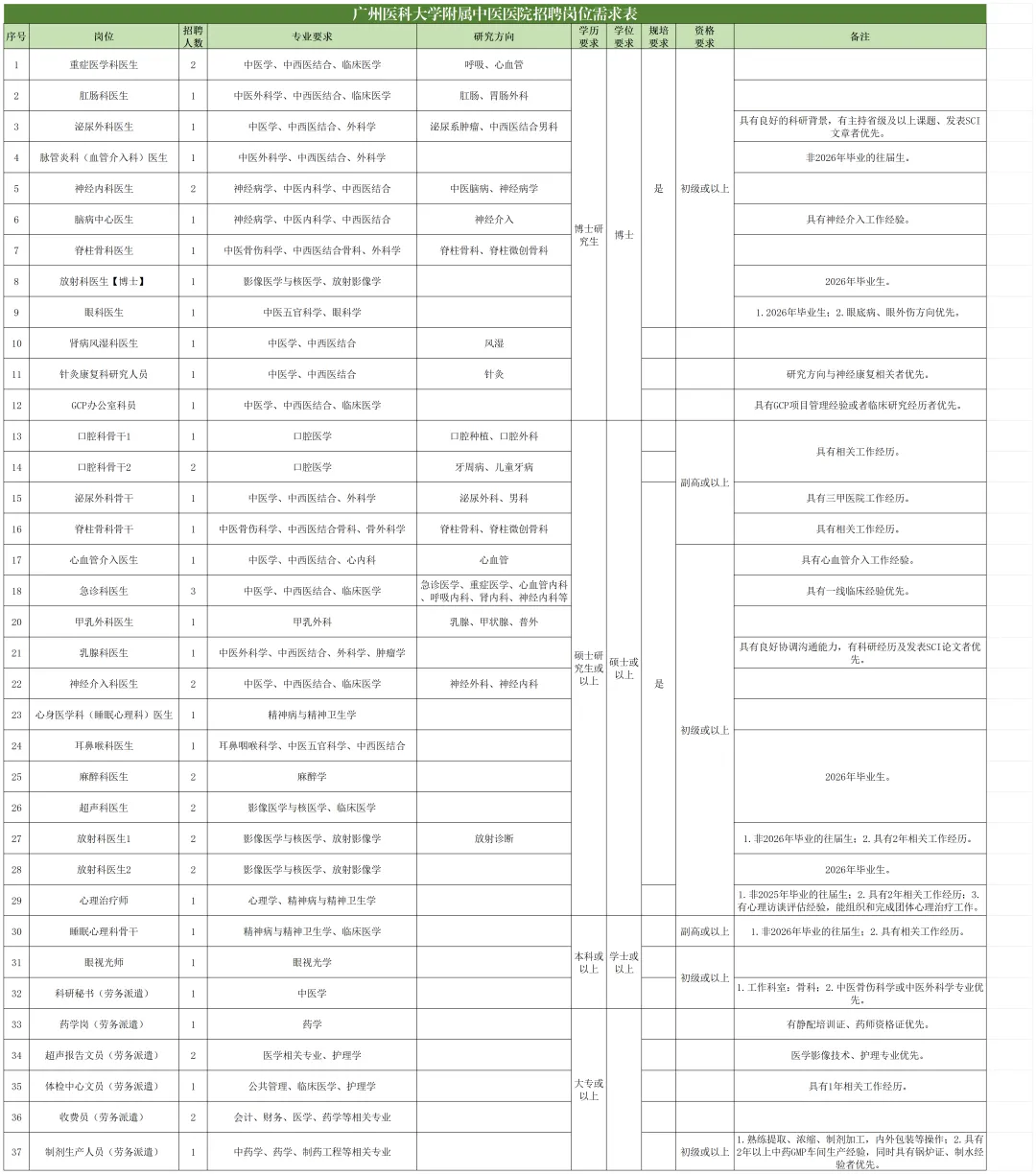 【广东广州】三甲医院 | 广州医科大学附属中医医院,招聘公告(招满截止)