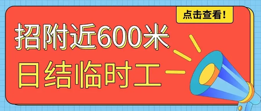 平台每天更新10000+日结兼职岗位信息,公众号每天发布的岗位有限,查看附近600米的老板在招的临时工岗位,可进入小程序,登录后可查看全部最新岗位,新的附近日结零工岗位实时发布,有想找距离近,工价高的日结兼职工作的工友们,需要进入小程序拼手速抢单哦!