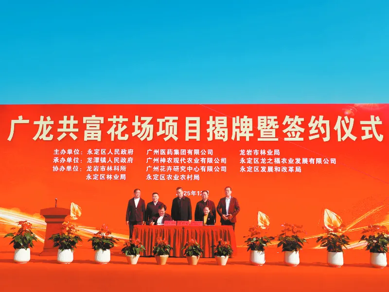 12月29日,与广州医药集团有限公司共同成立的广龙共富花场(广龙全产业链共富花卉产业园)揭牌签约,引进广州花卉研究团队,发挥龙岩生态环境优势,重点培育红掌、蝴蝶兰等优质花卉品种,发展绿色经济。