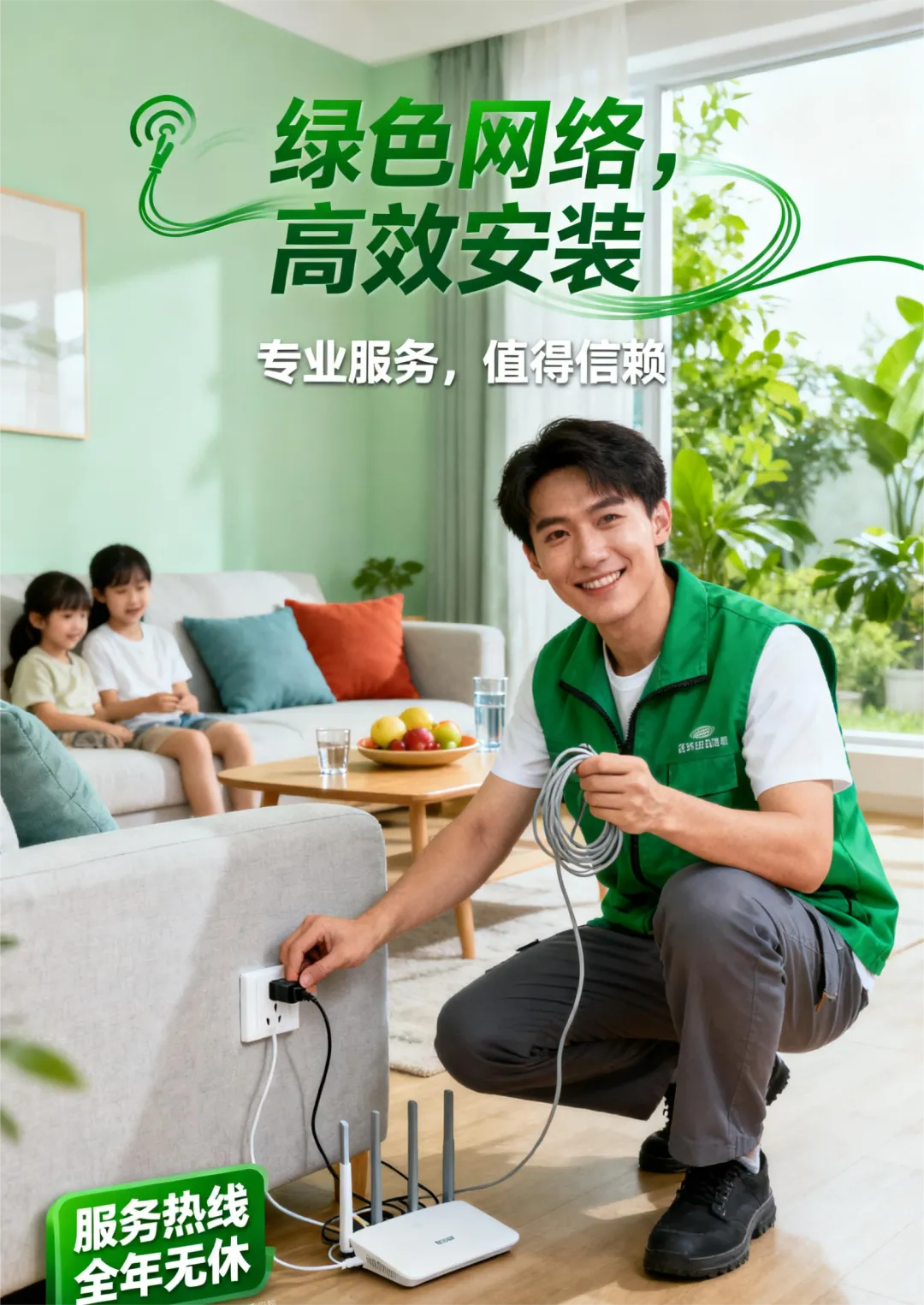 亮点:宽带中的 "稳定担当",多人高强度用网不卡顿,支持 "当日装、当日修、慢必赔" 服务承诺
