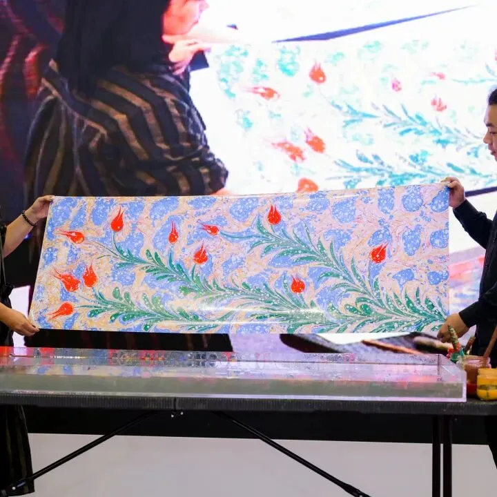 本届深圳乐本都市生活方式展同期设置了多场精彩论坛与互动活动。在文创出海主题论坛中,围绕产品设计、渠道选择及海外市场趋势等话题进行分享与讨论,通过具体案例与实操经验交流,为相关品牌与从业者提供了具有参考价值的信息支持;世界非遗 EBRU 水拓画表演则以传承人现场绘制的方式呈现传统技艺的独特魅力,观众可以近距离观看水面作画的完整过程,直观感受水拓画不可复制的艺术特性;文玩鉴宝互动环节中,内容创作者“海东鉴宝”走进现场,与观众进行面对面交流,观众携带个人藏品参与咨询,在轻松的互动氛围中了解基本鉴别思路与文玩相关知识。
