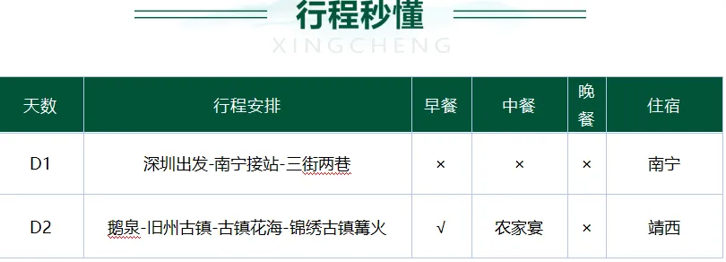 根据返程时间收拾好行李,结束愉快的广西之旅!(返回班次参考15点后班次,D3829/南宁-广州南15:37-19:19中转深圳北班次,具体班次以出票为准!)