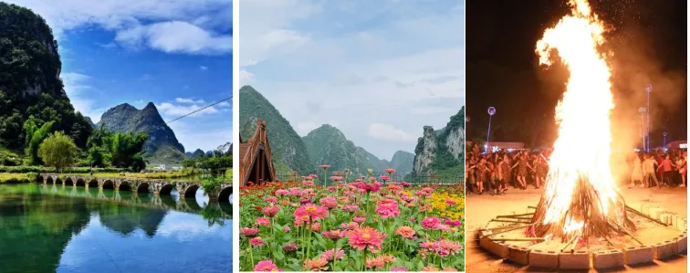 广西南宁鹅泉·旧州古镇·花海·锦绣古镇·古镇篝火·德天跨国大瀑布·中越边境