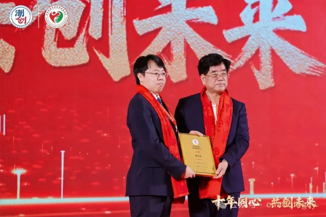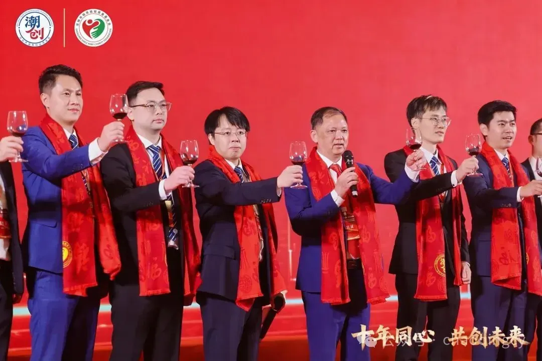 深圳市儿童医院院长麻晓鹏讲话,他表示对深圳潮创会第四届理监事会就职、微笑娃娃基金会成立十周年表示热烈祝贺,并向长期支持医院发展的微笑娃娃慈善基金会致以诚挚感谢。他介绍,双方自 2022 年结缘以来,微笑娃娃慈善基金会已累计资助380余名兔唇患儿,为他们送去健康的希望和温暖的微笑,这份沉甸甸的爱心我们铭记在心。2024年医院龙华院区运营后,蔡文川、邱杰钦等微笑娃娃慈善基金会共同会长慷慨捐赠,持续助力兔唇患儿的救治工作;2025年,深圳潮创学院第十四期学员参观交流活动在深圳儿童医院举办,进一步深化了双方友谊。他高度赞扬微笑娃娃慈善基金会十年如一日的善行义举,祝愿其未来宏图大展,并向在场嘉宾送上美好祝福。