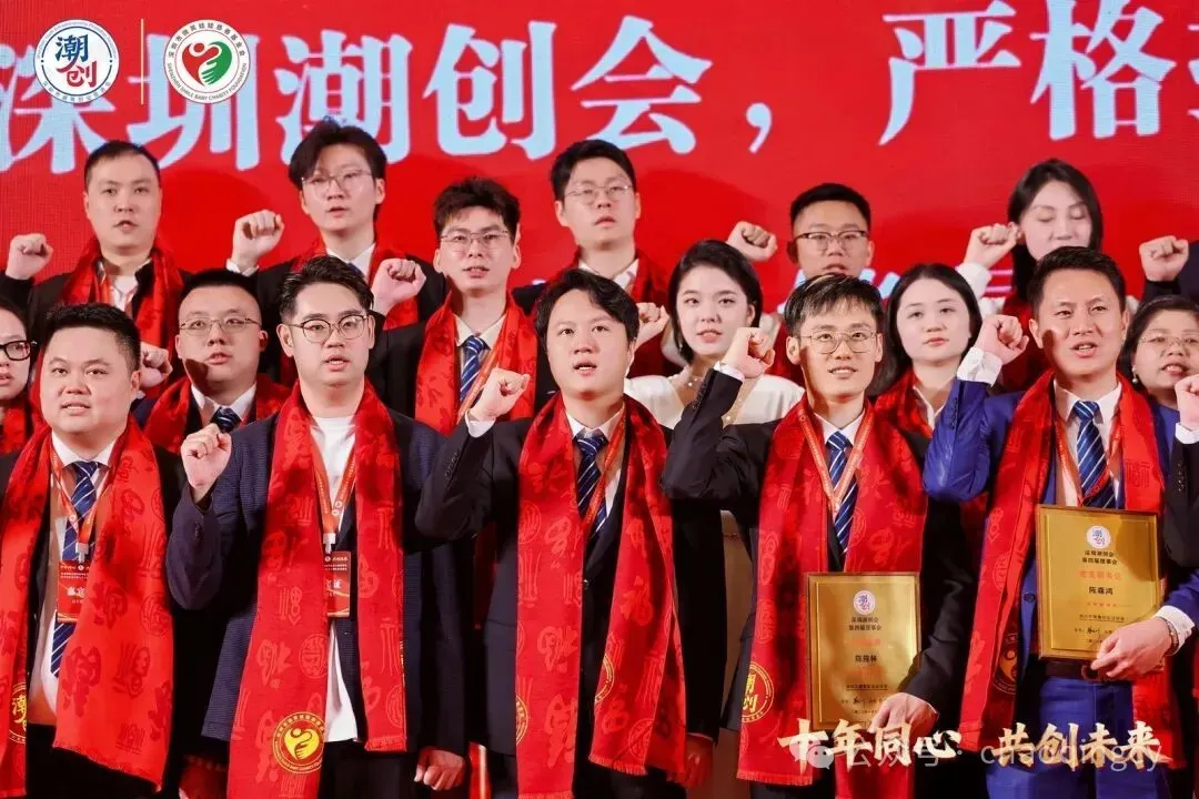 在锣鼓齐鸣中深圳潮创会第四届理事会主席黄大伟、监事会主席蔡浩东、共同主席陈俊林、党支部书记陈森鸿分别手持国旗、党旗、深圳潮创会旗、微笑慈善会旗,在深圳潮创会、微笑娃娃慈善基金会蔡文川会长、领导嘉宾的带领下,与主席团成员一同入场,随后,主席团成员挥旗喊出 “十年同心、共创未来,创业创新、为善最乐,深圳潮创会欢迎您” 的激昂口号,铿锵有力的声音回荡全场,瞬间点燃现场氛围。