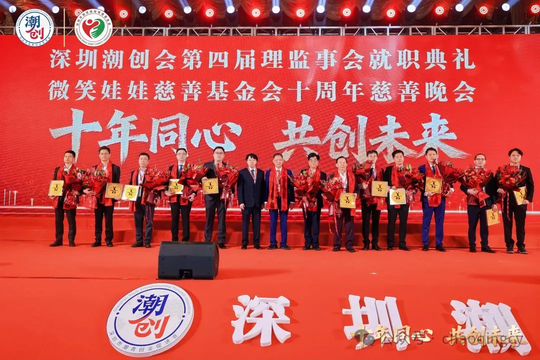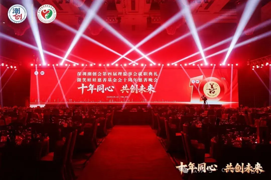 2026 年 1 月 11 日,深圳大中华喜来登酒店洋溢着热烈而庄重的氛围,深圳潮创会第四届理监事会就职典礼暨微笑慈善基金会成立十周年慈善晚会隆重举办,来自相关部门领导、企业家代表、海内外潮属社团会长、潮汕籍乡贤及爱心人士、战略合作单位及相关机构代表等共 700 多位嘉宾出席盛典。活动以三大篇章串联起换届传承、公益践行与文化欢歌,既完成了深圳潮创会组织架构的新老交替,又彰显了“创业创新、为善最乐”的核心理念,为公益事业与潮人创业发展注入新动能。