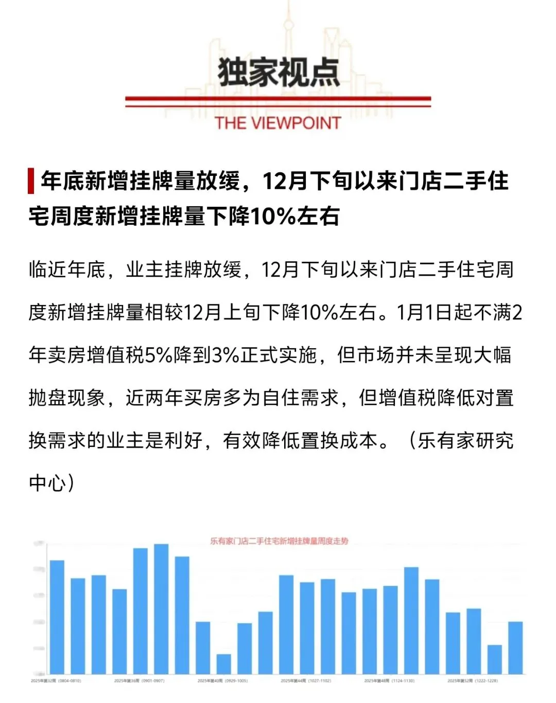 深圳楼市‖上周深圳二手房录得量超1500套,环比增长43%;年底新增挂牌量放缓,12月下旬门店二手住宅周度新增挂牌量下降10%