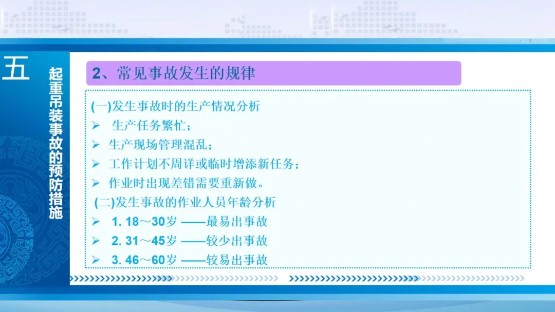 (1)没有安装上升极限位置限制器或限制器失灵,致使吊钩继续上升直至卷(拉)断起升钢丝绳。(2)起升机构主接触器失灵(如主触头熔断、因机构故障或电磁铁的铁芯剩磁过大,使主触头释放动作迟缓),不能及时切断起升,直至卷(拉)断起升钢丝绳。结合以上5种常见的吊物(具)坠落事故及其原因分析,我们在日常起重吊装作业前,需明确起重重物基本信息,核查吊具、吊索等工具的选择、使用及重物捆绑方式是否合法合规。此外,严禁人员站在吊物下面,这是基本要求!对吊装作业区域设置警示区与警示标识,禁止人员进入。