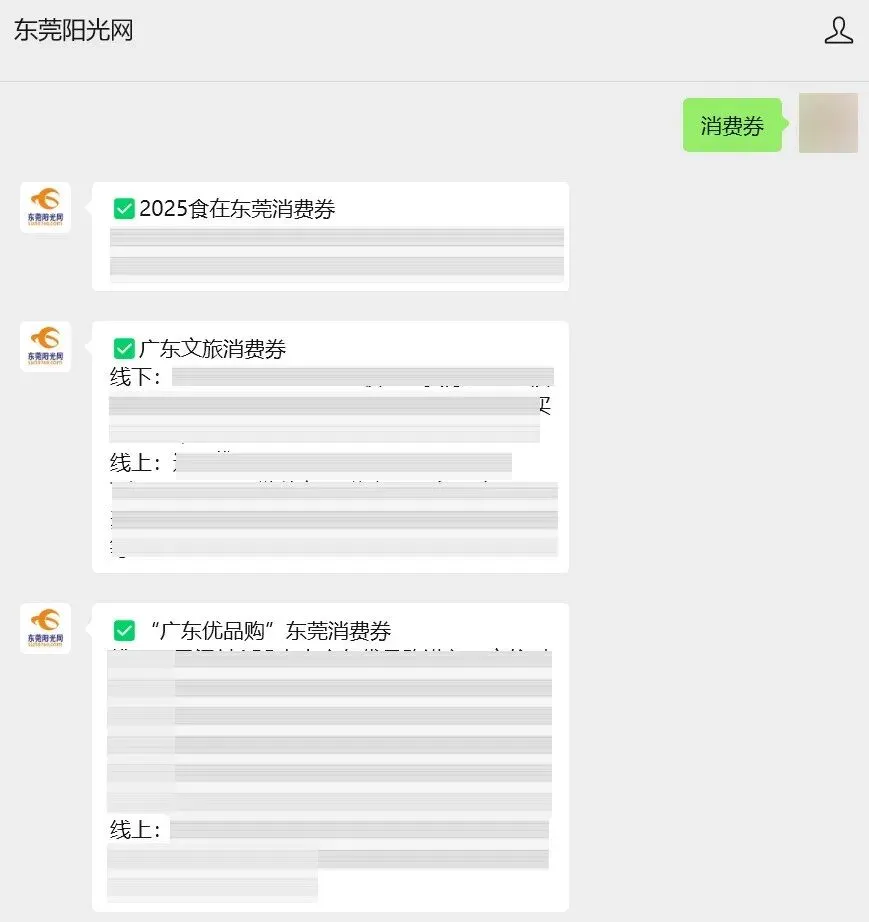 ②点击“私信”,在对话框输入“消费券”,即可获取以下四类消费券详细获取方式。