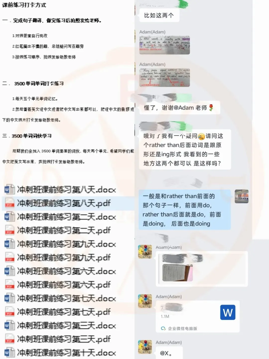提前预热练习(单词记忆,语法翻译等)